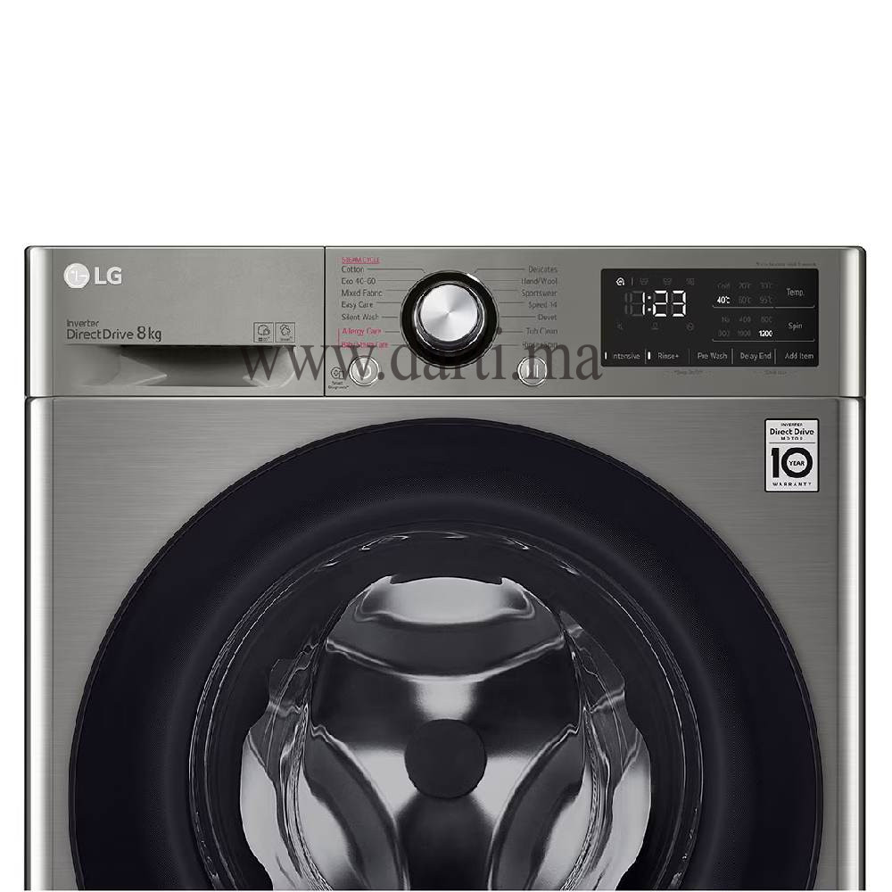Le lave-linge LG F2V3PYPKP offre une capacité de lavage de 8 kg et est équipé des technologies avancées pour un soin optimal de vos vêtements :